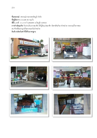 216 ชื่อสหกรณ์ สหกรณ์การเกษตรรัตภูมิ จ ากัด ชื่อผู้จัดการ นางเกสร หวานแก้ว ที่ตั้ง เลขที่ 2 ม.1 ต.ก าแพงเพชร อ.รัตภูมิ จ.สงขลา การด าเนินธุรกิจ รับฝากเงินจากสมาชิก ให้กู้เงินแก่สมาชิก จัดหาสินค้ามาจ าหน่าย รวบรวมน้ ายางของ ื่ สมาชิกเพอแปรรูปเป็นยางรมควันจ าหน่าย สินค้า/ผลิตภัณฑ์ ที่ได้รับมาตรฐาน