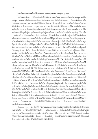 วิจัยด าเนินงาน คือ Charnes Cooper และ Rhodes ซึ่งในสมัยนั้นได้น า DEA มาใช้หาประสิทธิภาพของ