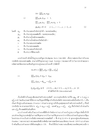 แบบจ าลองข้างต้นนี้เป็นรูปแบบทวีคูณ (Multiplier form ) ของ DEA เพอความสะดวกในการค านวณ