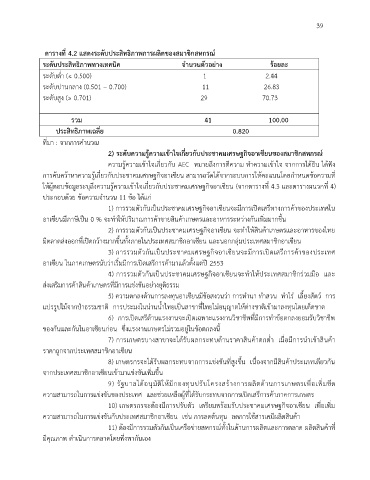 ตารางที่ 4.2 แสดงระดับประสิทธิภาพการผลิตของสมาชิกสหกรณ์