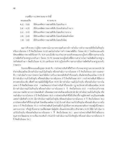 ระดับค่อนข้างมาก คิดเป็นร้อยละ 41.50 และร้อยละ 4.90 อยู่ในช่วงที่ความสามารถในการผลิตสินค้ามาตรฐานระดับ