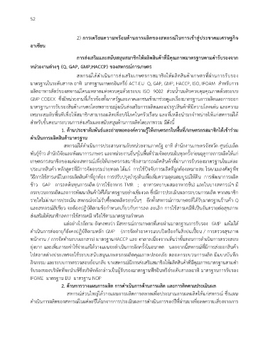 มาตรฐานในระดับสากล อาทิ มาตรฐานเกษตรอนทรีย์ ACT-EU Q, GAP, GMP, HACCP, ISO, IFOAM ส าหรับการ