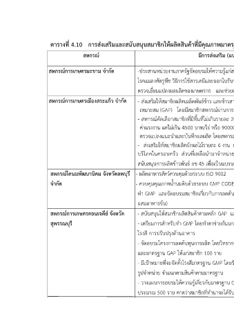 ตารางที่ 4.10 การส่งเสริมและสนับสนุนสมาชิกให้ผลิตสินค้าที่มีคุณภาพมาตรฐานตามค ารับรองจากหน่วยงานต่างๆ (ต่อ)