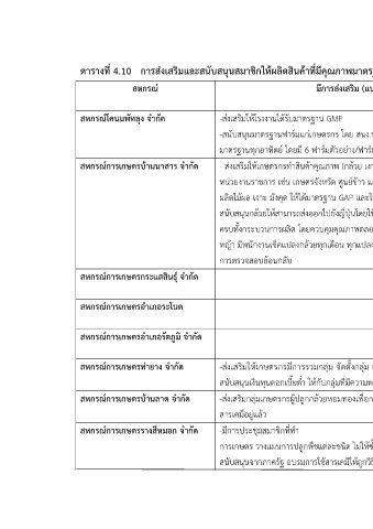 ตารางที่ 4.10 การส่งเสริมและสนับสนุนสมาชิกให้ผลิตสินค้าที่มีคุณภาพมาตรฐานตามค ารับรองจากหน่วยงานต่างๆ (ต่อ)