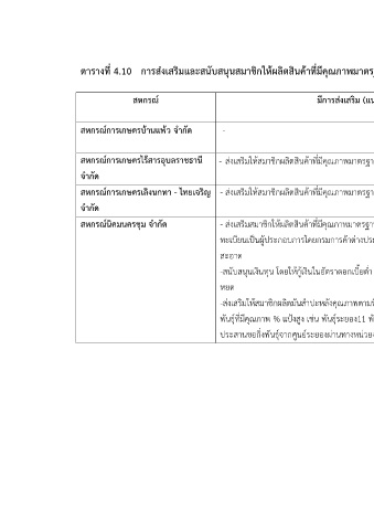 ตารางที่ 4.10 การส่งเสริมและสนับสนุนสมาชิกให้ผลิตสินค้าที่มีคุณภาพมาตรฐานตามค ารับรองจากหน่วยงานต่างๆ (ต่อ)