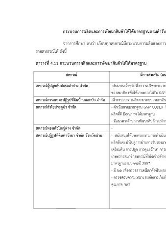 ตารางที่ 4.11 กระบวนการผลิตและการพัฒนาสินค้าให้ได้มาตรฐาน