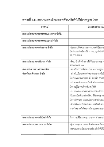 ตารางที่ 4.11 กระบวนการผลิตและการพัฒนาสินค้าให้ได้มาตรฐาน (ต่อ)