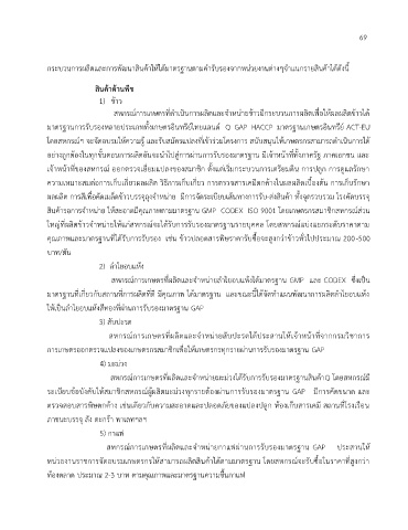 กระบวนการผลิตและการพัฒนาสินค้าให้ได้มาตรฐานตามค ารับรองจากหน่วยงานต่างๆจ าแนกรายสินค้าได้ดังนี้