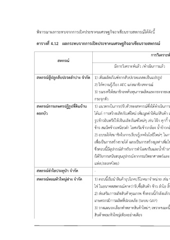 ตารางที่ 4.12 ผลกระทบจากการเปิดประชาคมเศรษฐกิจอาเซียนรายสหกรณ์