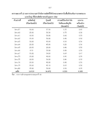 ตารางผนวกที่ 22 ผลการประมาณค่าปัจจัยการผลิตที่ใช้จริงของเกษตรกรในพื้นที่ส่งเสริมการเกษตรแบบ