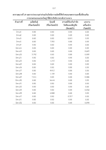 ตารางผนวกที่ 29 ผลการประมาณค่าส่วนเกินปัจจัยการผลิตที่ใช้จริงของเกษตรกรนอกพื้นที่ส่งเสริม