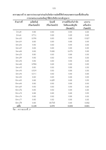 ตารางผนวกที่ 31 ผลการประมาณค่าส่วนเกินปัจจัยการผลิตที่ใช้จริงของเกษตรกรนอกพื้นที่ส่งเสริม
