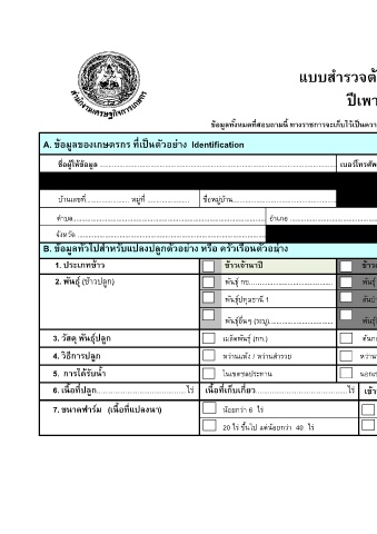 B. ขอมูลทั่วไปส าหรับแปลงปลูกตัวอย่าง หรอ ครัวเรอนตัวอย่าง