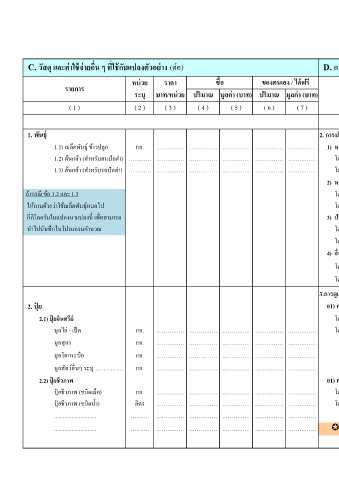 C. วัสดุ และคาใชจายอน ๆ ทีใชกับแปลงตัวอยาง (ต่อ) D. การใชแรงงาน ทีใชกับแปลงตัวอยาง (ต่อ)