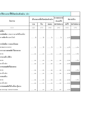 ระบุ บาท/หนวย ปรมาณ มูลคา (บาท) ปรมาณ มูลคา (บาท) กิจกรรม ท างานได ้
