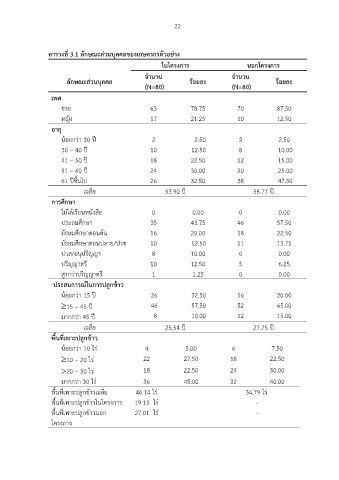ตารางท 3.1 ลักษณะส่วนบุคคลของเกษตรกรตัวอย่าง