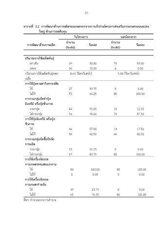ตารางท 3.2 การพัฒนาด้านการผลิตของเกษตรกรจากการเข้าร่วมโครงการส่งเสริมการเกษตรแบบแปลง