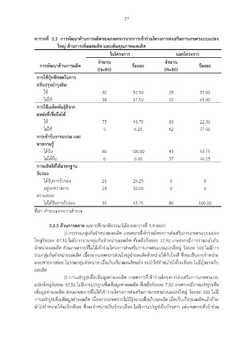 ตารางท 3.3 การพัฒนาด้านการผลิตของเกษตรกรจากการเข้าร่วมโครงการส่งเสริมการเกษตรแบบแปลง