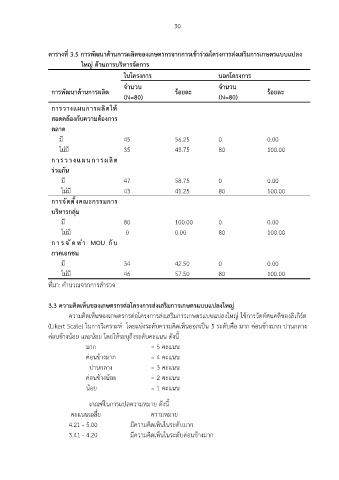 ตารางท 3.5 การพัฒนาด้านการผลิตของเกษตรกรจากการเข้าร่วมโครงการส่งเสริมการเกษตรแบบแปลง