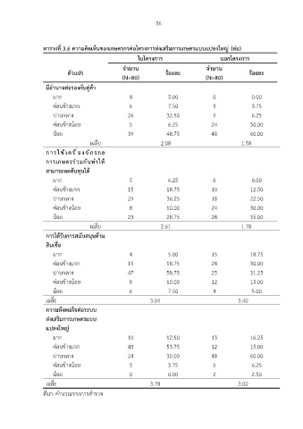 ตารางท 3.6 ความคิดเห็นของเกษตรกรต่อโครงการส่งเสริมการเกษตรแบบแปลงใหญ่ (ต่อ)