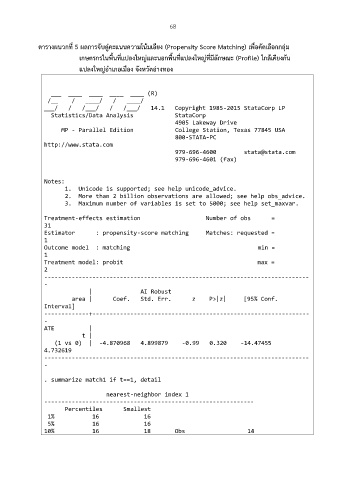 ตารางผนวกที่ 5 ผลการจับคู่คะแนนความโน้มเอียง (Propensity Score Matching) เพื่อคัดเลือกกลุ่ม
