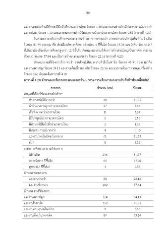 ชั่วคราว ร้อยละ 77.84 และเป็นการจ้างแรงงานประจ า ร้อยละ 22.16 (ตารางที่ 4.20)