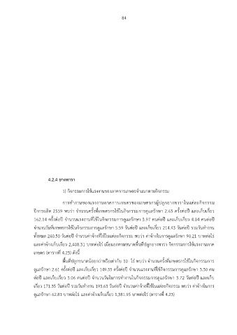 จ านวนวันที่เกษตรกรใช้ในกิจกรรมการดูแลรักษา 5.59 วันต่อปี และเก็บเกี่ยว 214.43 วันต่อปี รวมวันท างาน
