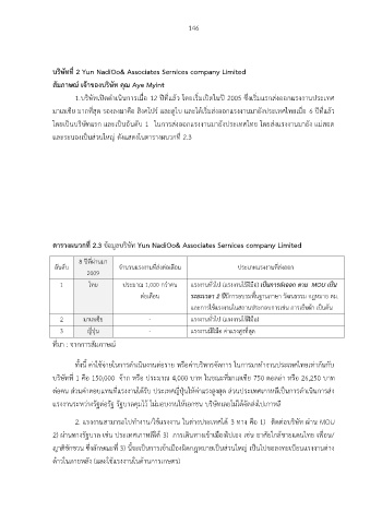 ตารางผนวกที่ 2.3 ข้อมูลบริษัท Yun NadiOo& Associates Sernices company Limited