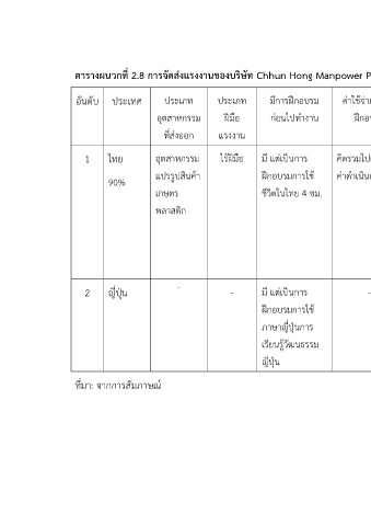 ตารางผนวกที่ 2.8 การจัดส่งแรงงานของบริษัท Chhun Hong Manpower Ptc.,Ltd