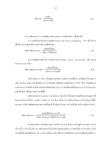 ส าหรับแนวคิดการวัดผลิตภาพแรงงานด้านการเกษตร ส านักงานเศรษฐกิจการเกษตร (2550)