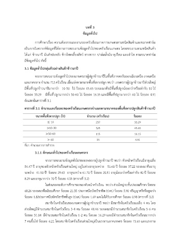 ตารางที่ 3.1 จ านวนและร้อยละของครัวเรือนเกษตรกรจ าแนกตามขนาดของพื้นที่เพาะปลูกสินค้าข้าวนาปี