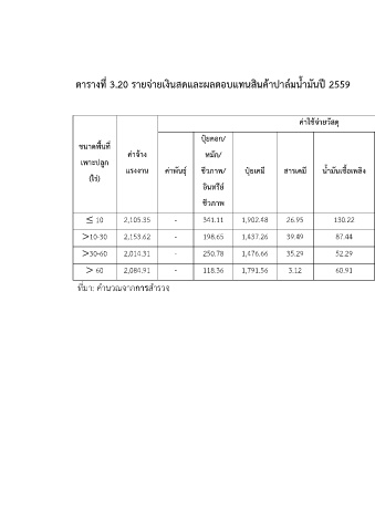 ตารางที่ 3.20 รายจ่ายเงินสดและผลตอบแทนสินค้าปาล์มน้ ามันปี 2559