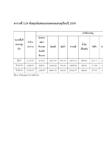 ตารางที่ 3.24 ต้นทุนเงินสดและผลตอบแทนทุเรียนปี 2559