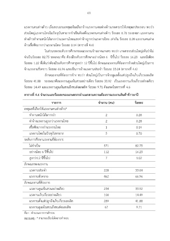 จ้างแรงงานชั่วคราว ร้อยละ 66.96 และเป็นการจ้างแรงงานประจ า ร้อยละ 33.04 (ตารางที่ 4.6)