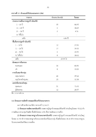ตารางที่ 3.1 ลักษณะทั่วไปของเกษตรกร (ต่อ)