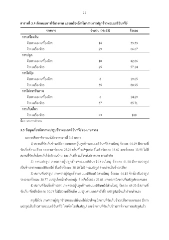 3.5 ข้อมูลเกี่ยวกับการแปรรูปข้าวหอมมะลิอินทรีย์ของเกษตรกร