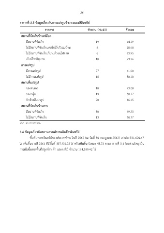ตารางที่ 3.5 ข้อมูลเกี่ยวกับการแปรรูปข้าวหอมมะลิอินทรีย์