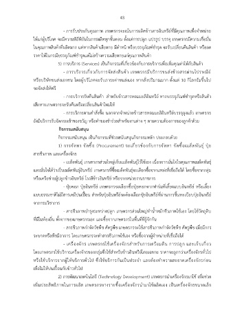 5) การบริการ (Services) เป็นกิจกรรมที่เกี่ยวข้องกับการบริการเพื่อเพิ่มคุณค่าให้กับสินค้า