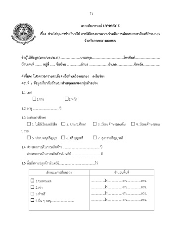 1.4 ประสบการณ์ในการผลิตข้าว ............................................... ปี