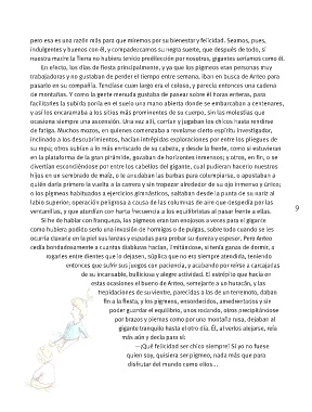 o los pigmeos habituados a ejercicios gimnásticos, saltaban desde la punta de su nariz al
