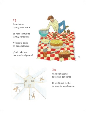 23 13 Todo lo toca 24 la muy penderoca Cuelga su casita Se hace la muerta la cuida y abrillanta la muy zangaraca La visita que recibe A veces la dicha se acuesta y no levanta en pena la trueca ¿Cuál es la loca que zumba algaraca?
