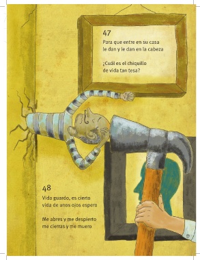 47 Para que entre en su casa le dan y le dan en la cabeza ¿Cuál es el chiquillo de vida tan tesa? 48 Vida guardo, es cierto vida de unos ojos espero Me abres y me despierto me cierras y me muero