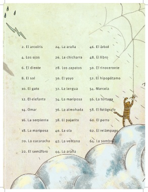 6. El diente 28. Los zapatos 50. El rinoceronte