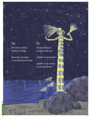 14 15 Por tierra o mar Ovejas blancas anda mi amigo y negras del mar Búscalo con lupa ¿Quién es el pastor? 9 o encuéntralo al azar ¿Quién a las naves ha de alumbrar?