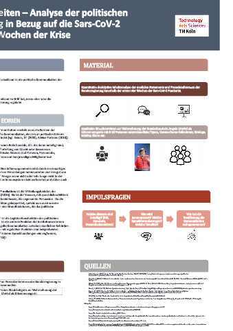 Kommunikation politischer Akteure ebenso wie die Kommunikation, die sich an politische Akteure Krisenmanagerin mit 8-10 Personen unterschiedliche Typen, Corona-Demo-Teilnehmer, Virologe,