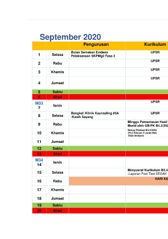 TAKWIM SK SUNGAI HJ. MATAHIR, TAWAU