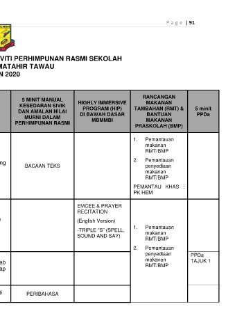 JADUAL GURU BERTUGAS DAN AKTIVITI PERHIMPUNAN RASMI SEKOLAH