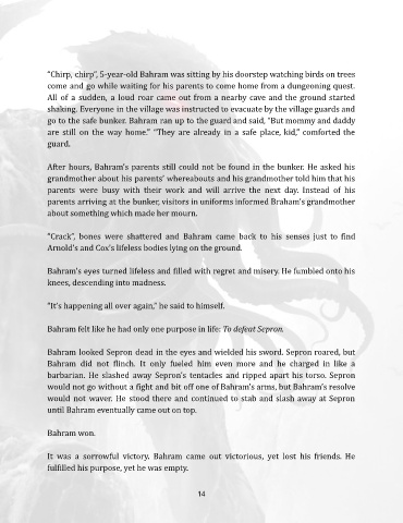 Bahram felt like he had only one purpose in life: To defeat Sepron.