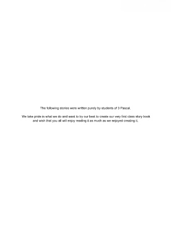 The following stories were written purely by students of 3 Pascal. We take pride in what we do and want to try our best to create our very first class story book and wish that you all will enjoy reading it as much as we enjoyed creating it.