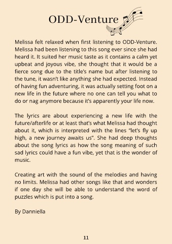 Melissa felt relaxed when first listening to ODD-Venture.